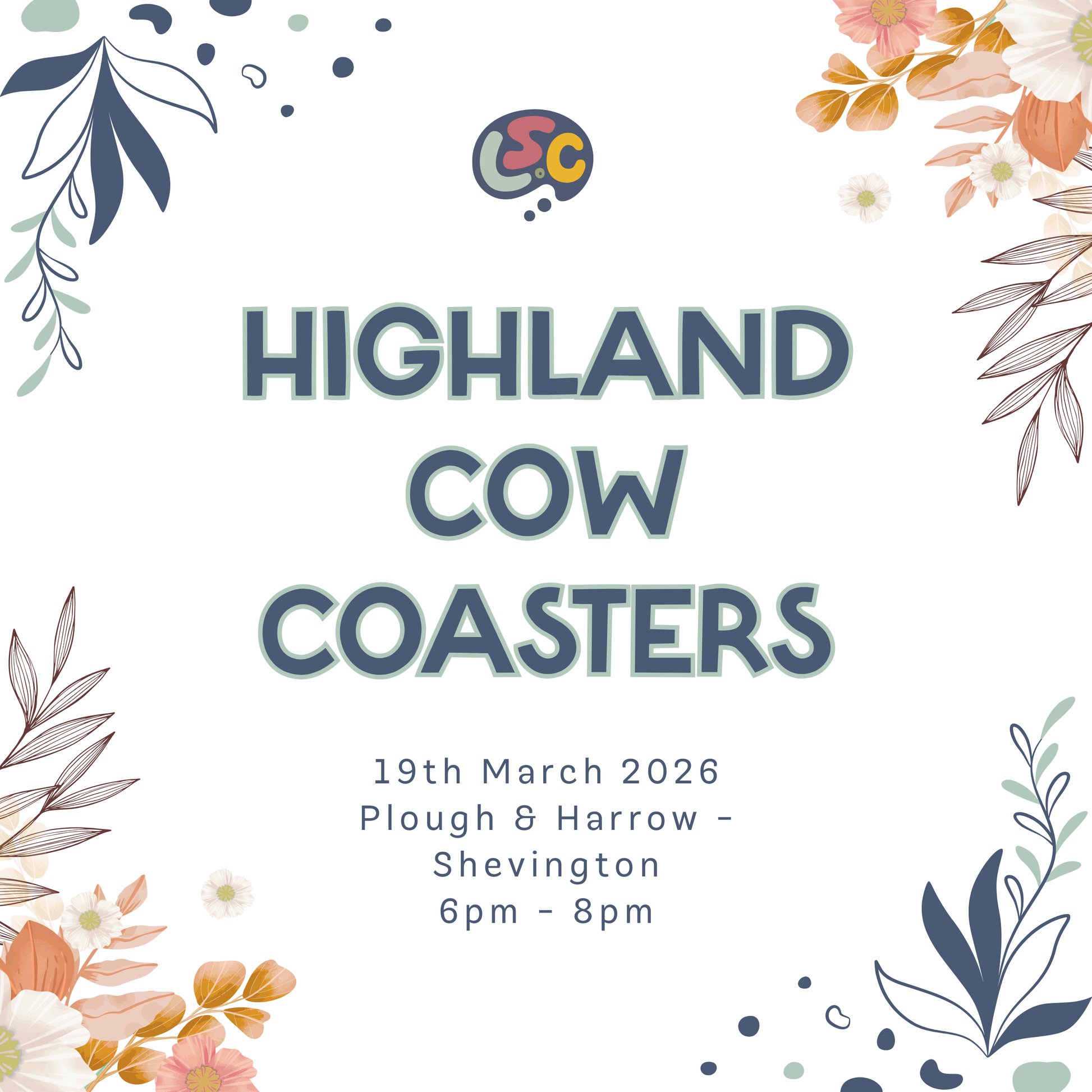 Come and spend a cosy, creative evening painting these colourful Highland Cow ceramic coasters. It’s a relaxed, no-pressure session where you can switch off, have a natter and enjoy doing something just for you.